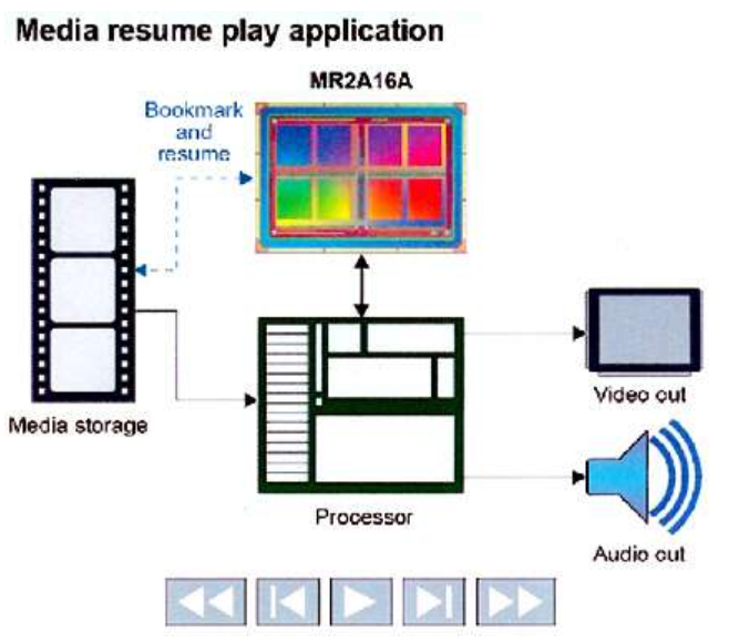 MRAM還適用于具有簡歷播放功能的娛樂應用程序。掉電期間,指示播放媒體時間戳的書簽會快速存儲在非易失性MRAM中。然后幾乎立即進行后續播放并繼續播放(下圖1)。