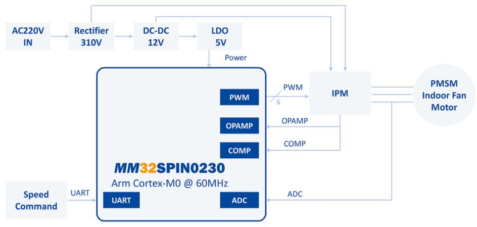 低成本32位單片機MM32SPIN0230空調(diào)內(nèi)風機方案