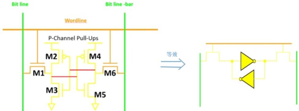 一個6T sram cell的經典結構如圖所示: