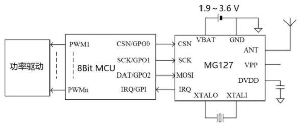 藍牙芯片MG127是具有低功耗、低成本的BLE 收發器,內部集成了發射機、接收機、GFSK 調制解調器和BLE 基帶處理。電源電壓1.9~3.6,可以采用一個紐扣電池(3.0v)供電,具備3uA待機電流,20mA@0dBm持續發射,18mA持續接收等特點。MG127 采用DFN3x3 封裝,只需搭配低成本MCU 和少數外圍被動器件,即可實現BLE 遙控、藍牙電子秤等應用。