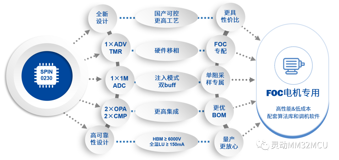 靈動(dòng)微低成本FOC電機(jī)專(zhuān)用單片機(jī)MM32SPIN0230資源配置