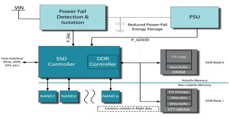 圖1具有電源故障保護(hù)功能的混合DDR / STT-MRAM SSD架構(gòu)